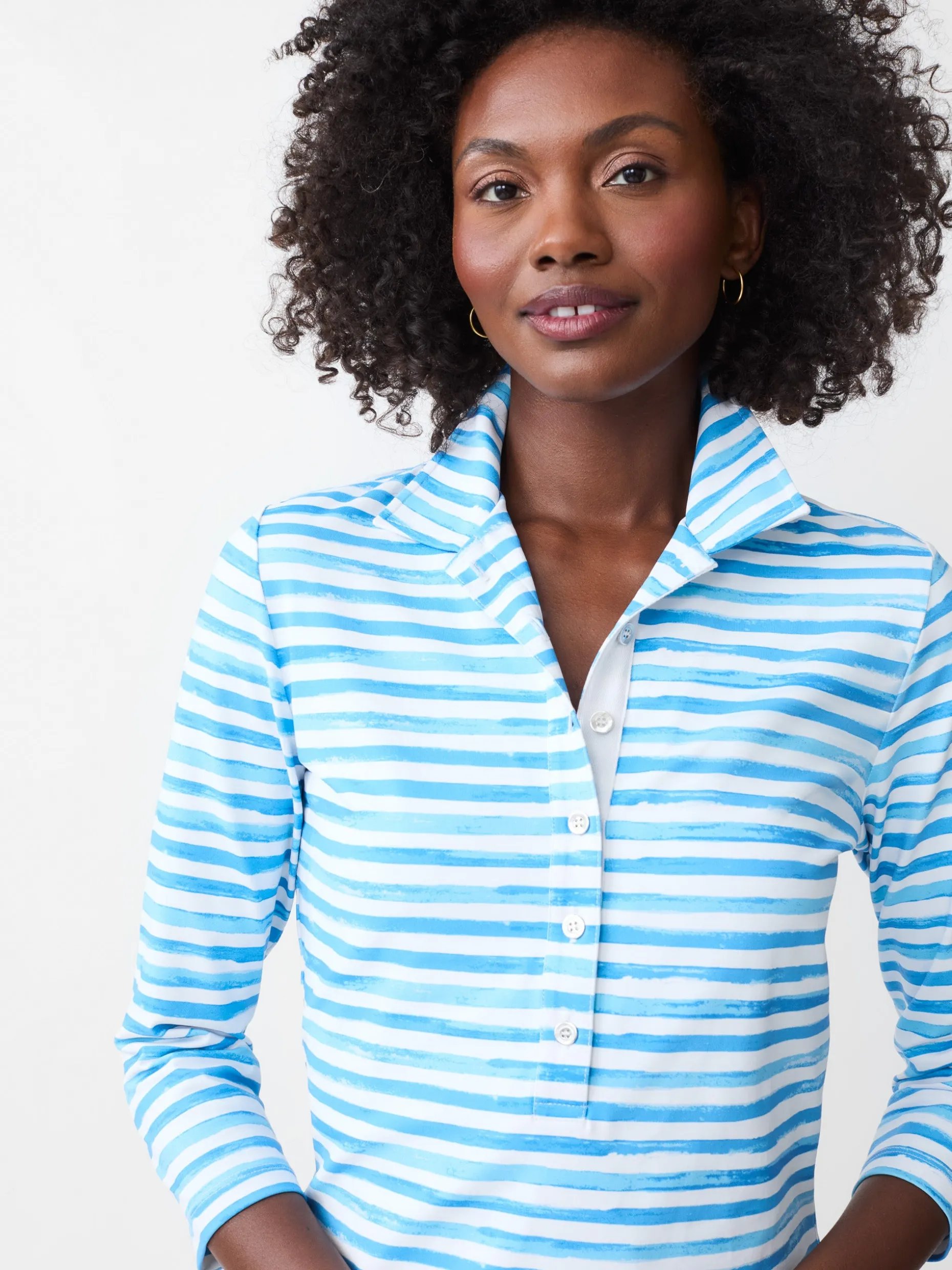 Court 3/4 Sleeve Polo in Santa Rosa Stripe