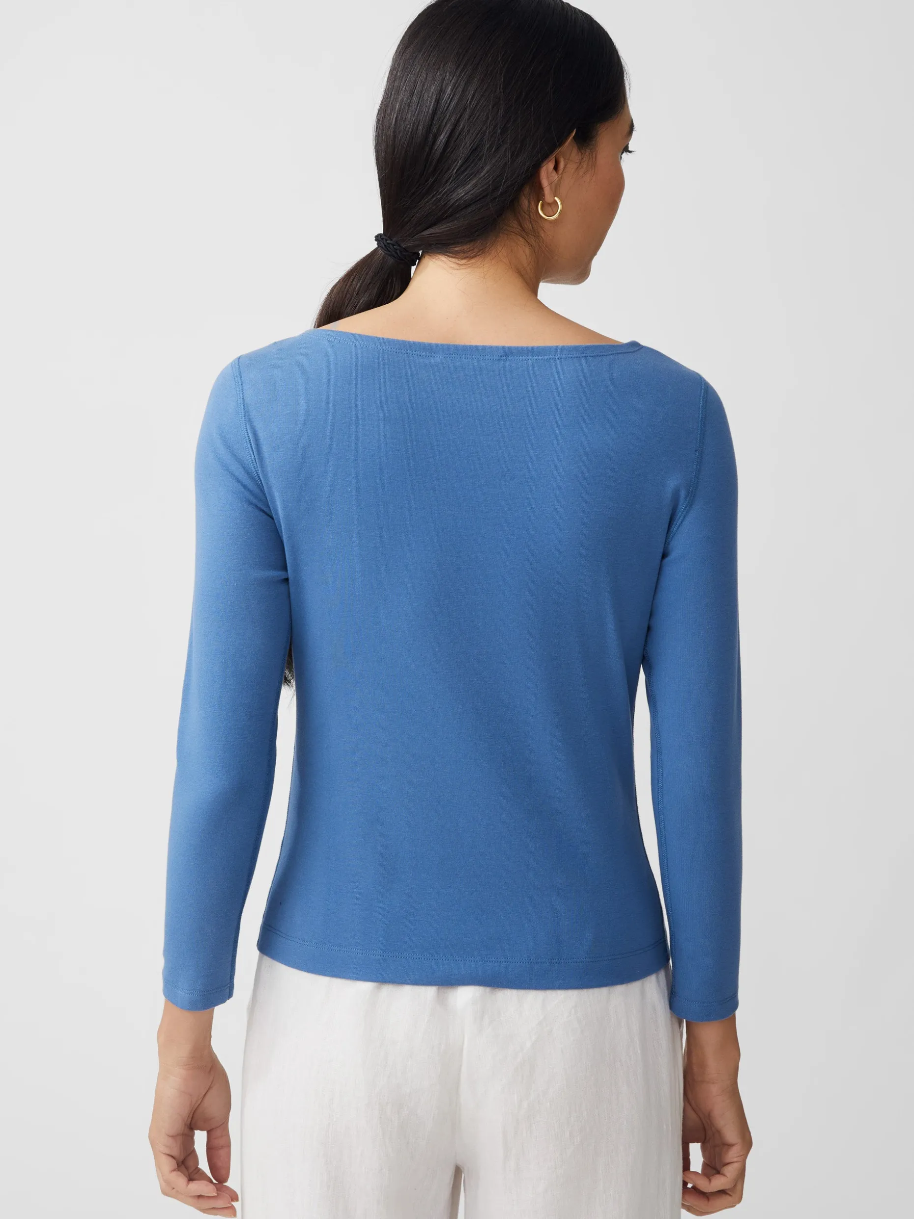 As seen on the Summer Travel Checklist, our cotton tee perfect for layering. With a boat neckline and bracelet sleeves, wear over your shorts, skort, jeans, or maxi skirt. Plus, it comes in three colors.